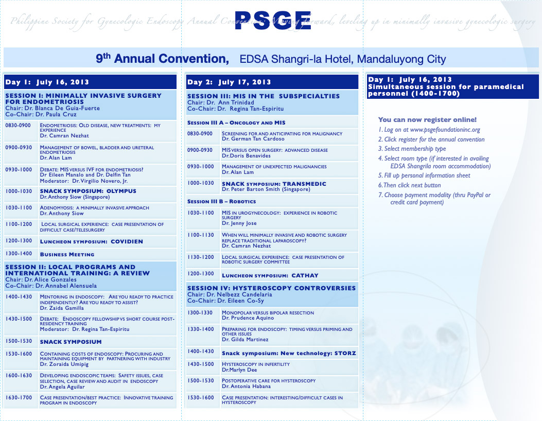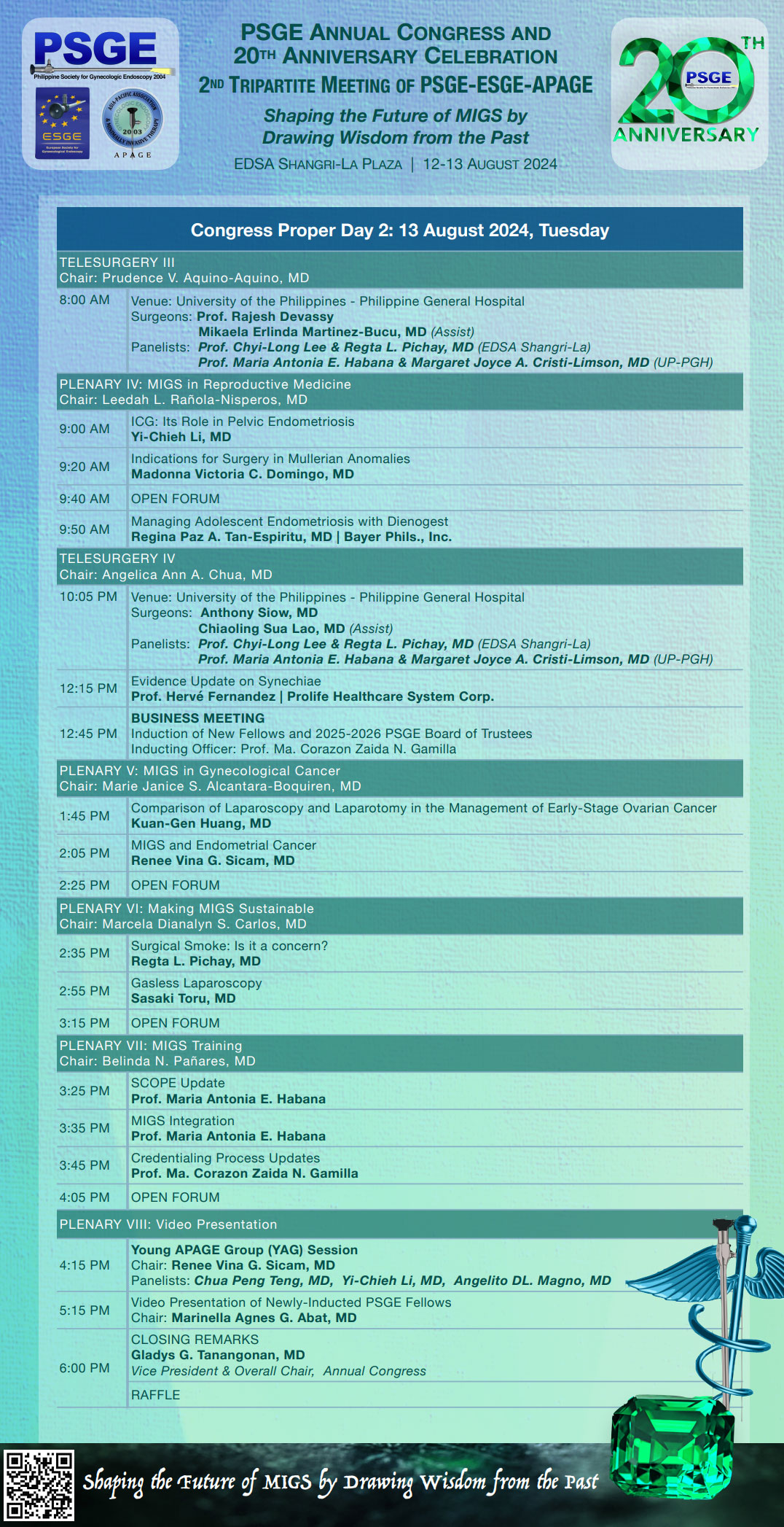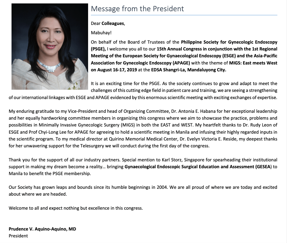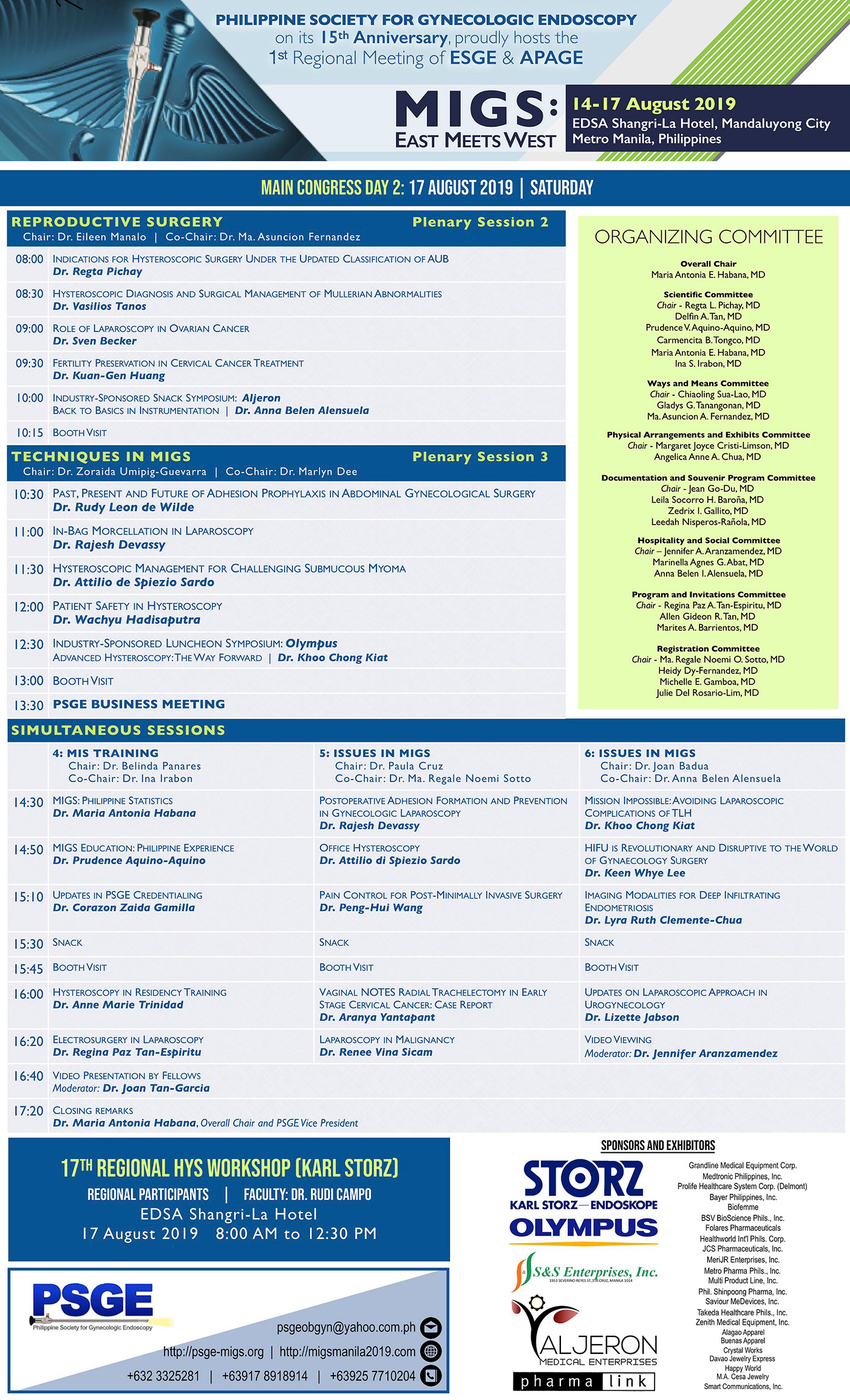 The 2-day congress will showcase personalities well-known for their in-depth knowledge in minimally invasive surgery. There will be Updates on Classification and Terminology in Endometriosis and Hysteroscopy, a PSGE-ESGE session on Adenomyosis, a PSGE-YAG APAGE Session plus other exciting sessions that are sure to stimulate your minds.